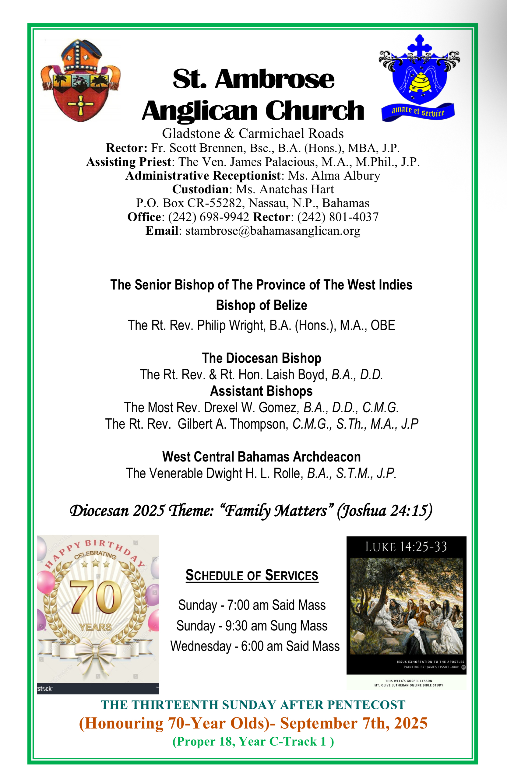 Weekly Service – Sept 7, 2025 September 4, 2025 by St. Ambrose Church Pent XIII Proper 18 Yr C 70 yr Olds Sun Sep 7th 2025 FINAL AV 2Download